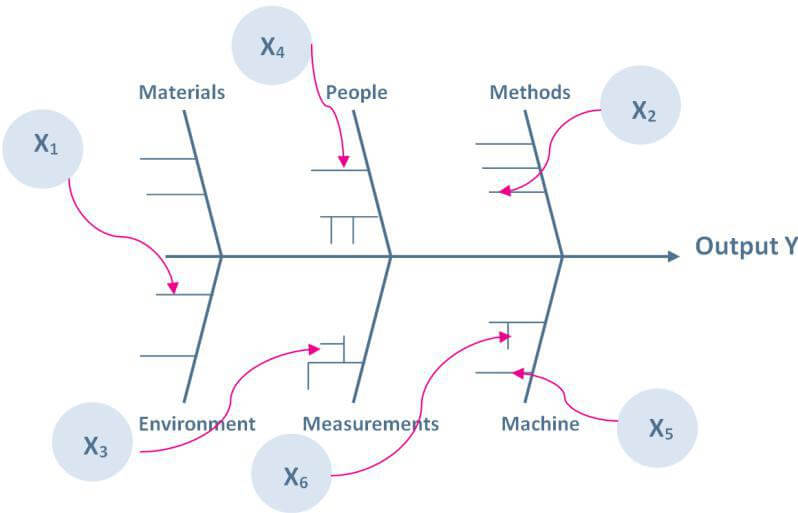 Diagram przyczynowo-skutkowy to narzędzie, które pomaga zidentyfikować, posortować i przedstawić wszystkie potencjalne przyczyny określonego problemu lub aspektu jakościowego. Zapewnia graficzne przedstawienie związku między danym wynikiem (Y) a wszystkimi czynnikami (X), które mają na niego wpływ. Ten typ diagramu jest również znany jako diagram Ishikawy, od nazwiska człowieka, który go wynalazł, Kaoru Ishikawy.